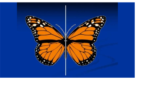 'Zrcalna simetrija' jedan je od najčešćih uzoraka u prirodi. Ona podrazumijeva da se objekt može podijeliti jednom ravninom na dva dijela koji su poput odraza u ogledalu. Najčešće se pojavljuju kod čovjeka i životinja kojima takvo tijelo omogućuje lakše kretanje, ravnotežu i orijentaciju u prostoru. Mnogi listovi i cvjetovi savršeno su simetrični po sredini. Na ovoj slici je primjer leptira koji odražava tu ljepotu i savršenstvo prirode.